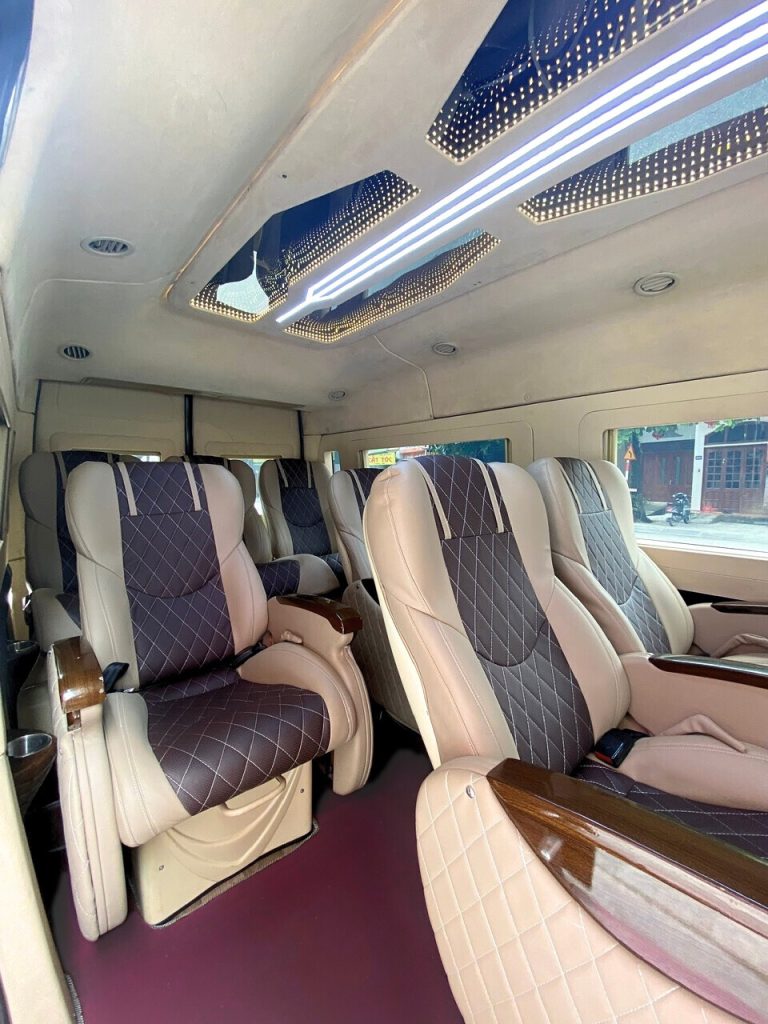 Xe limousine 9 chỗ ghế ngồi rộng rãi, êm ái, rất phù hợp cho cung đường dài và nhiều đèo dốc như Hà Giang.